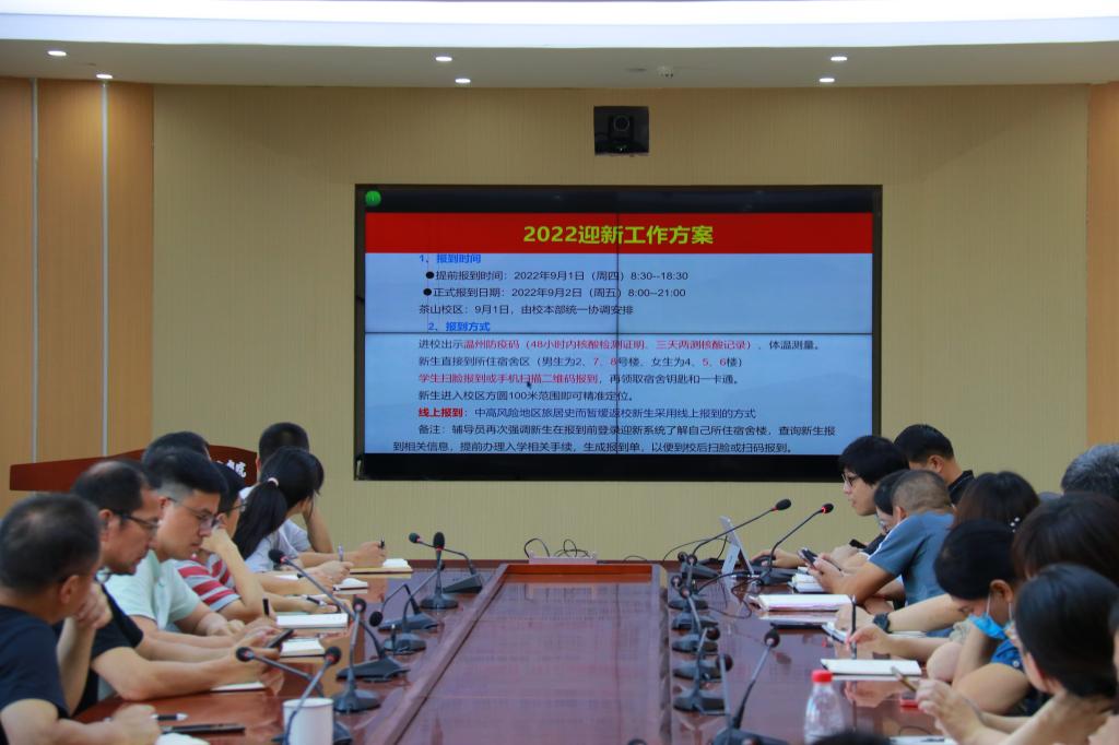 会上,教务部对2022年迎新工作总体方案进行详细解读,从时间安排、报到流程、任务分工及相关注意事项等方面进行了具体安排。办公室就新学期新老生返校(迎新)疫情防控和迎新工作进行具体部署,强调要扎实推进迎新重点环节和防控关键环节,确保开学和新生报到工作平稳有序开展。
