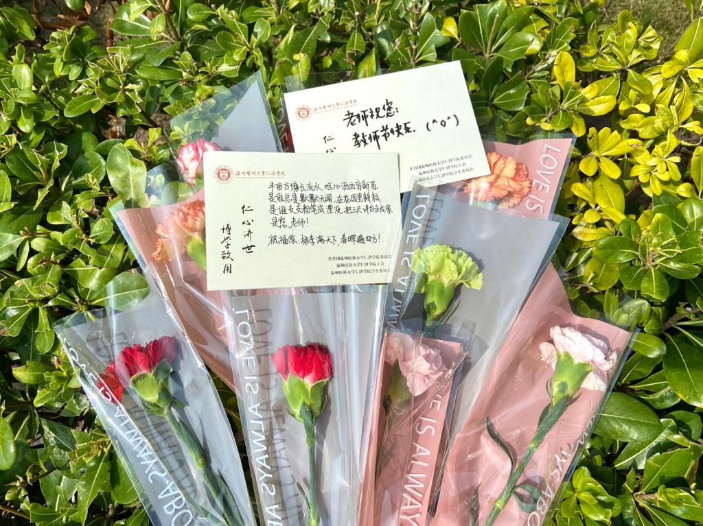 寸草耕耘终不悔,杏坛愿做育林人。9月9日上午,a片91 工会驻点校车下车点、走访各个办公室,为茶山、滨海校区上课与办公的老师送上鲜花与贺卡,致以诚挚的节日祝福。