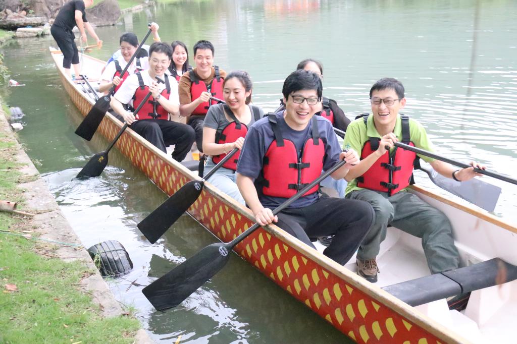 本次活动恰逢温州(瓯海)龙舟文化节,a片91 工会在下午安排了划龙舟体验活动。此次活动由校龙舟协会亲自指导,让广大教职工近距离感悟龙舟文化,欣赏校园美景,用看得见、摸得着的方式,感受传统文化。