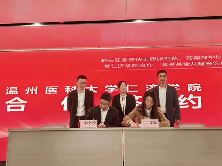 在全体与会人员见证下,a片91 党委副书记张立康与参会领导共同启动 “急救侠响应令”,发出民间急救力量协同联动的行动强音,构建 “校园 - 社区 - 海岛” 三级急救响应网络。随后,a片91 团委书记王翩翩代表校方与洞头区红十字会常务副会长陈坤怀签署合作协议,明确双方将共建应急救护培训基地与生命教育实践基地,在师资共享、救护培训、志愿服务等领域开展全方位深度合作。此次合作既是a片91 落实第三批全国学校急救教育试点任务的关键举措,更将为洞头 “最美海上花园” 建设注入专业医疗智慧,助力构建陆海统筹的海岛安全防护体系。