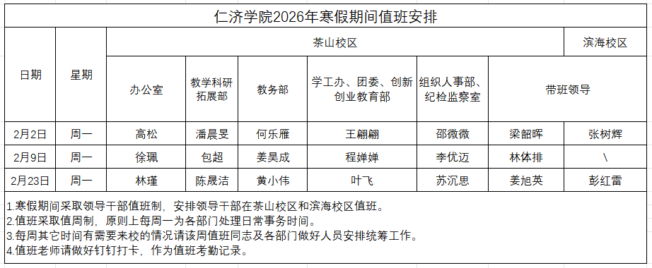 关于2026年寒假工作安排的通知
