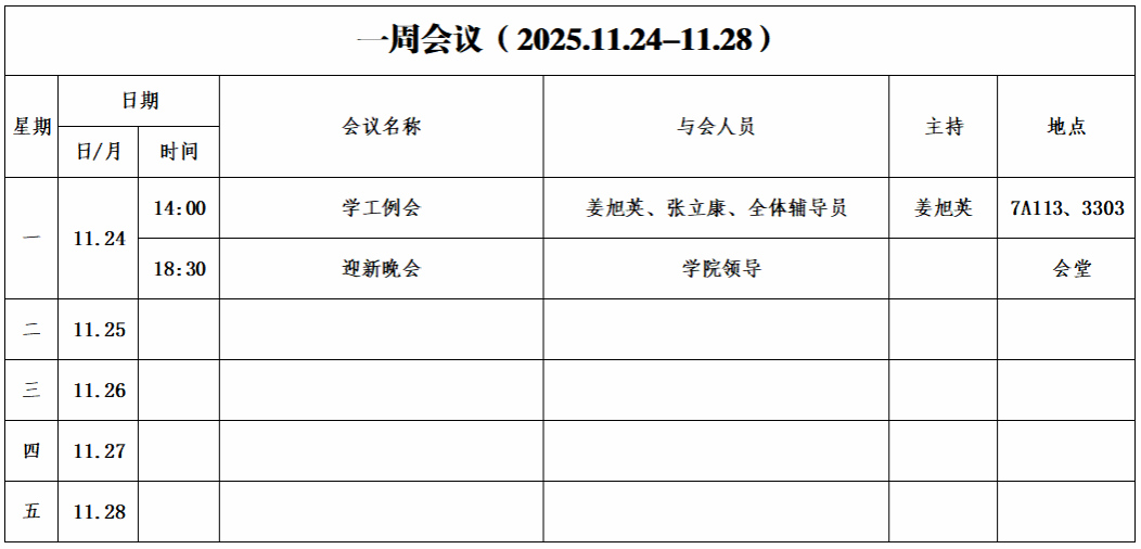 第十一周会议安排
