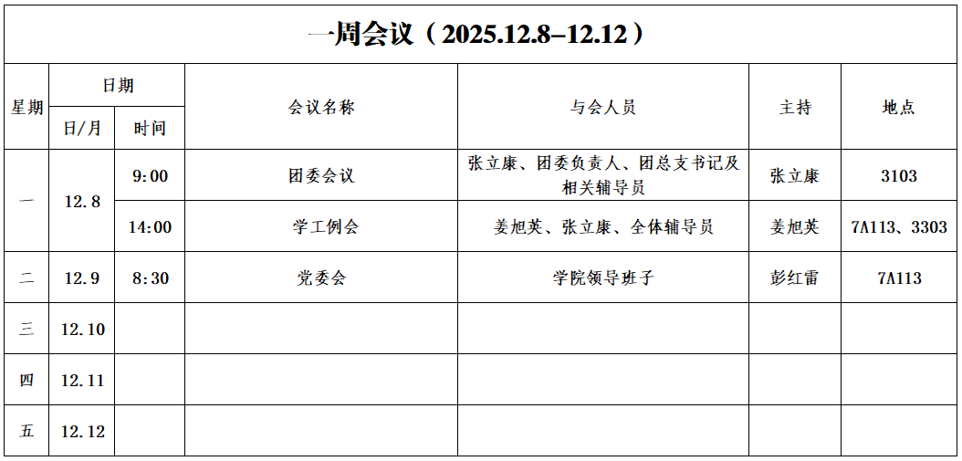 第十五周会议安排