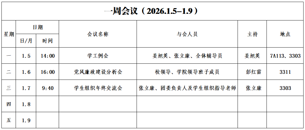 第十七周会议安排